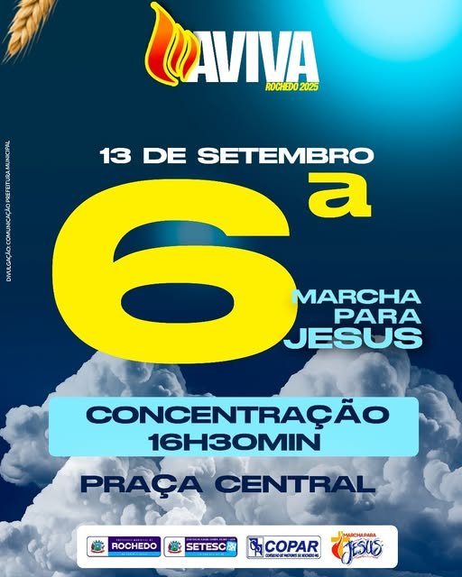 No dia 13 de setembro, a Prefeitura de Rochedo realizará a 6ª Marcha para Jesus, um evento que reúne fé, união e adoração. A concentração começa às 16h30, na Praça Central, ponto de encontro para igrejas, famílias e toda a comunidade. A marcha faz parte do calendário do Aviva Rochedo 2025, movimento que visa fortalecer […]