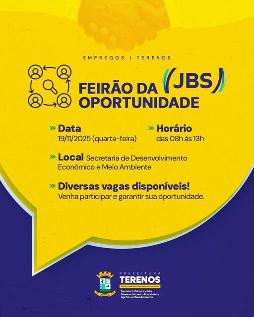 A Prefeitura de Ribas do Rio Pardo, por meio da Secretaria Municipal de Desenvolvimento Econômico e Meio Ambiente, irá promover no dia 19 de novembro de 2025 o Feirão da Oportunidade, uma ação voltada à seleção de candidatos para diversas vagas disponibilizadas pela empresa JBS. O processo seletivo ocorrerá das 8h às 13h, diretamente na […]
