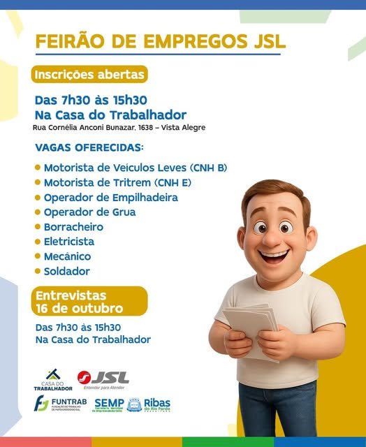 A JSL, em parceria com a Casa do Trabalhador e a Funtrab, está com inscrições abertas para o Feirão de Empregos em Ribas do Rio Pardo. A oportunidade é destinada a profissionais que buscam inserção ou recolocação no mercado de trabalho, especialmente nas áreas operacionais e de transporte. As inscrições acontecem das 7h30 às 15h30, […]