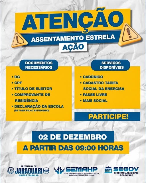 A Prefeitura de Jaraguari realizará, no dia 2 de dezembro, a partir das 9h, uma grande ação social no Assentamento Estrela, oferecendo diversos serviços essenciais para os moradores da região. A iniciativa é promovida pela Secretaria Municipal de Assistência Social, Habitação e Políticas Públicas (SEMAHP), em parceria com a Secretaria Municipal de Governo (SEGOV). Durante […]