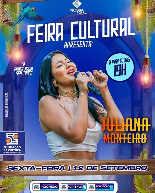 A cidade de Rochedo recebe nesta sexta-feira, 12 de setembro, a partir das 19h, mais uma edição especial da já tradicional Feira Cultural – Nossa Feira. O evento será realizado na Praça Maria Sem Troco e promete uma noite recheada de música, cultura e sabores. A atração musical da noite fica por conta da cantora […]