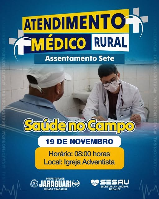 A Prefeitura de Jaraguari, por meio da Secretaria Municipal de Saúde (Sesau), realizará na próxima quarta-feira, 19 de novembro, mais uma ação do programa Saúde no Campo, voltado ao atendimento médico nas áreas rurais do município.