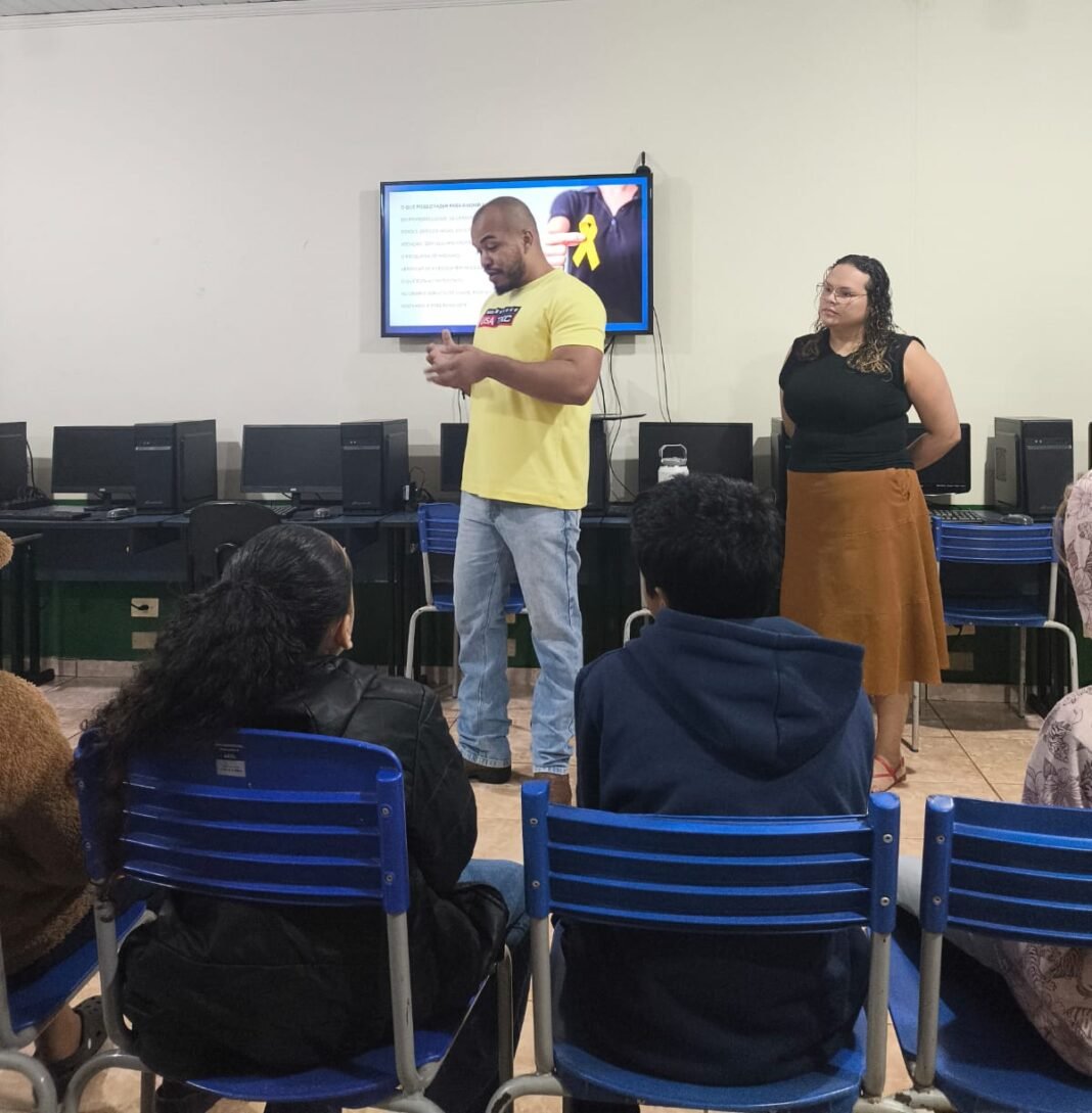 Foram promovidas dinâmicas com educadores e rodas de conversa com estudantes, abordando temas como valorização pessoal, o papel do professor, saúde mental, importância de expressar sentimentos, pedir ajuda e valorizar a vida.