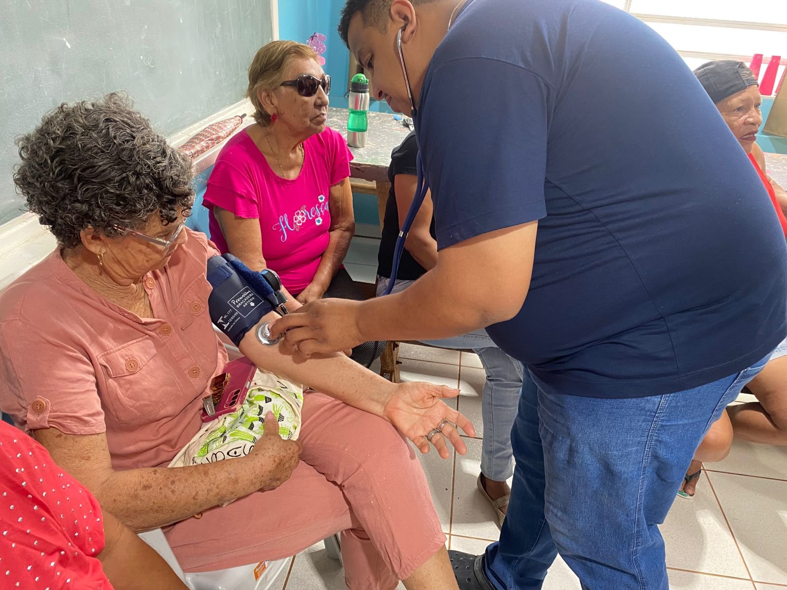 Durante a atividade, os futuros agentes reforçaram orientações sobre cuidados e formas de prevenção para melhorar a qualidade de vida da população. Além das informações, os participantes receberam atendimento direto, com aferição de pressão arterial feita pelos alunos técnicos de enfermagem Sebastião e Thiago, garantindo um serviço ágil e humanizado.